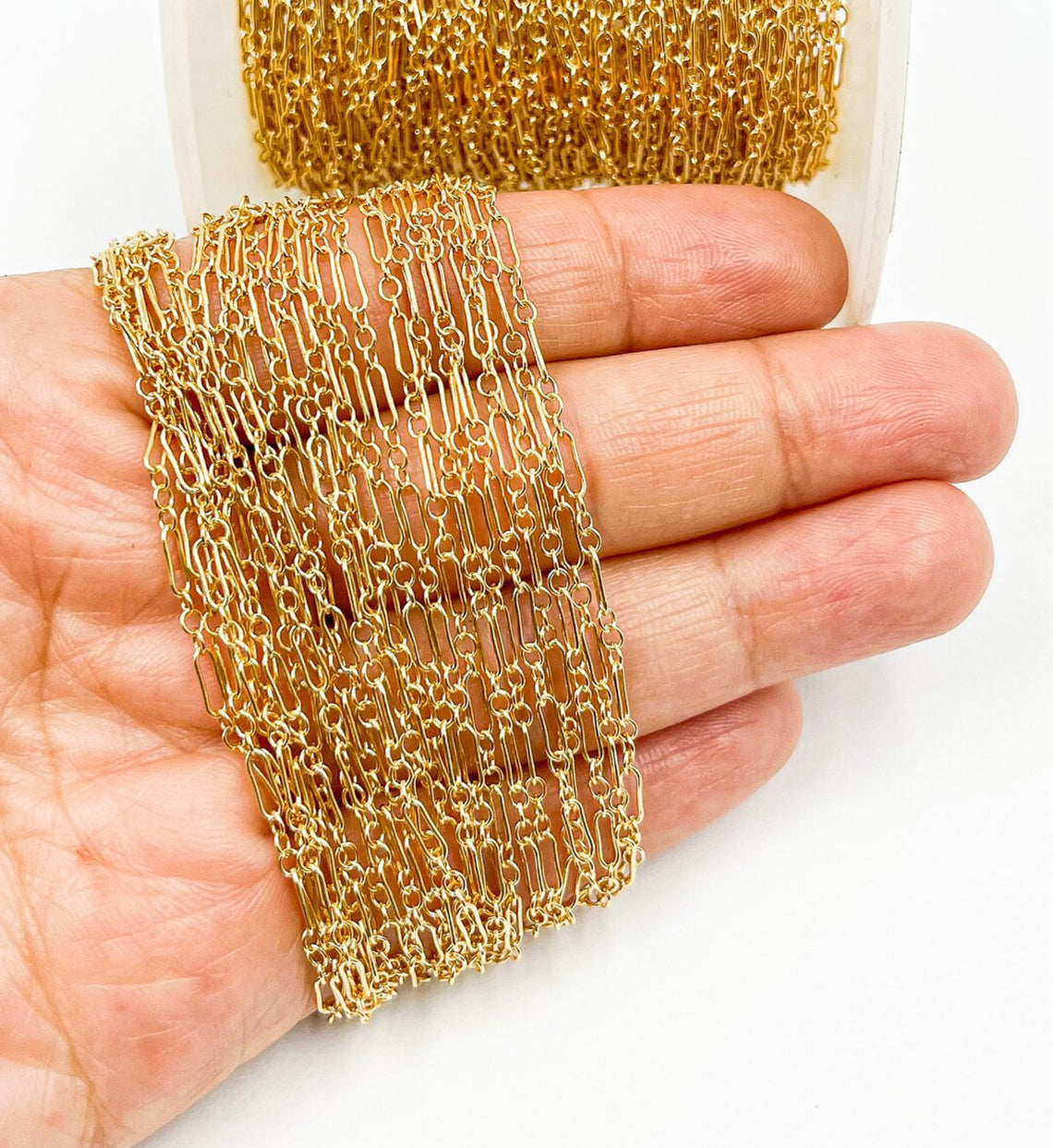 14kt Gold Filled One of 1.6mm Width by 5.0mm Length Smooth Larger Oval Link Followed by Three of 1.6mm Width by 2.0mm Length Smooth Smaller Oval Links With Middle Smaller Oval Link, Long and Short Chain. Price per: 1 Foot.
