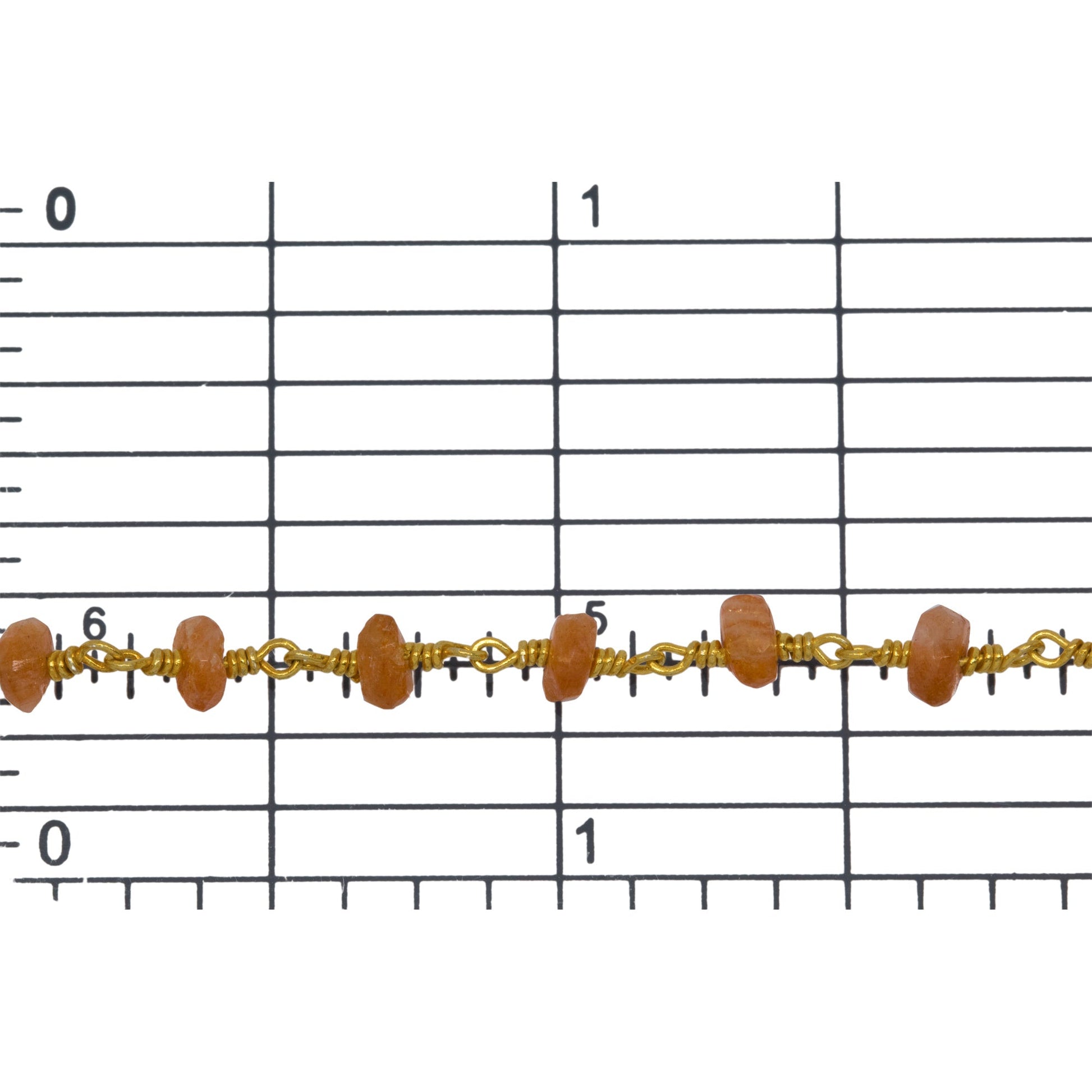 Brass Gold Plated / Vermeil 4.0mm Width / Length SunStone Gem Stone Chain. Price per: 1 Inch.