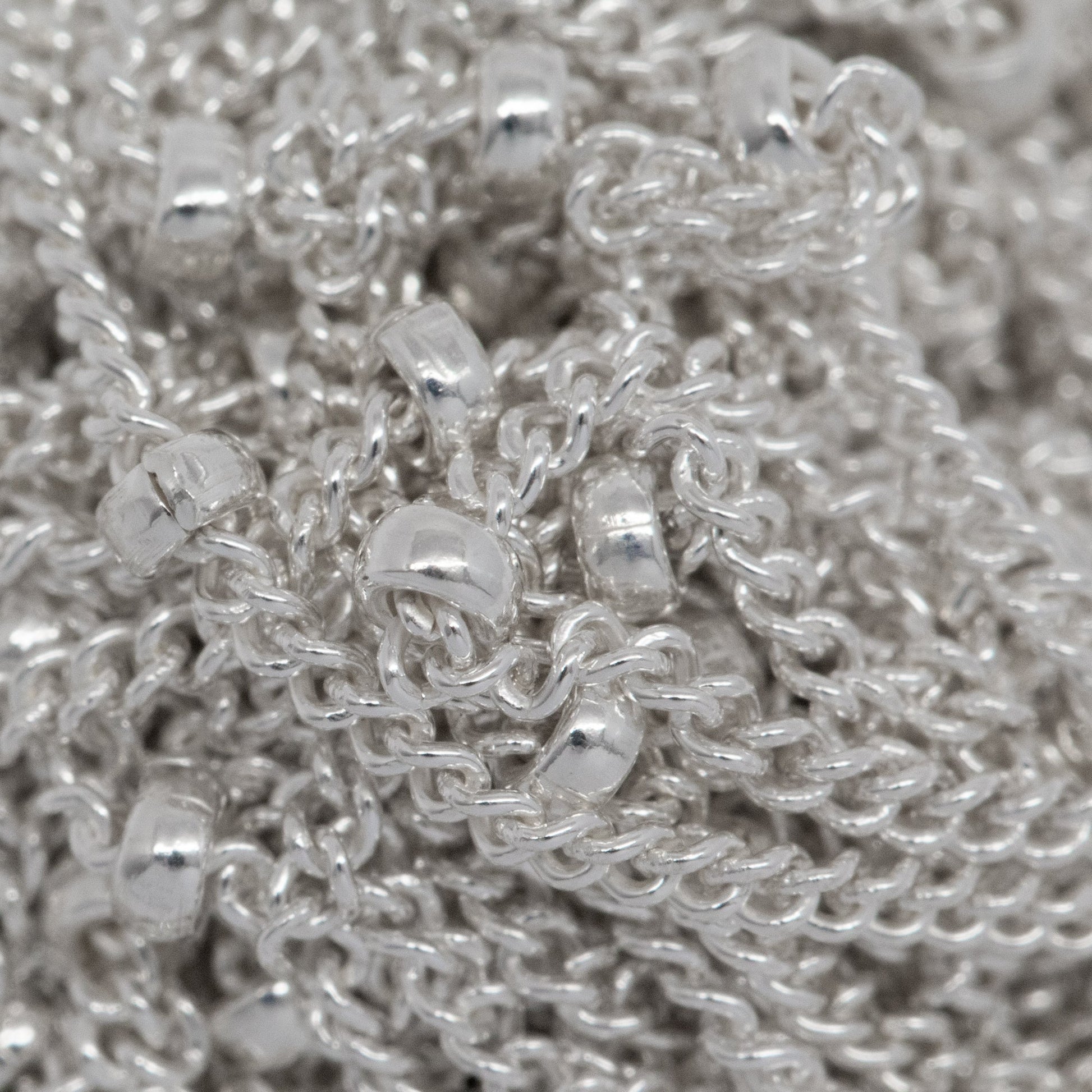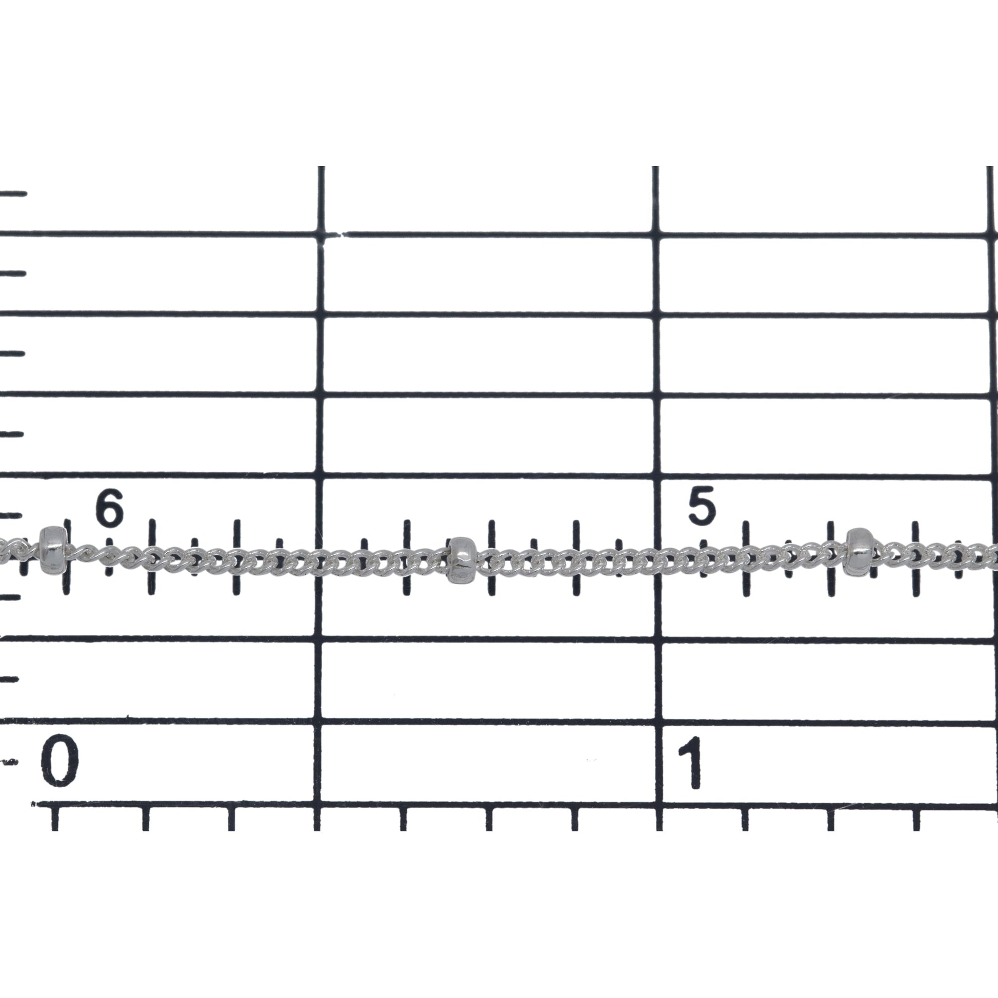 Sterling Silver 1.0mm width by 1.9mm length Smooth Curb Chain with 1.9mm Roundel Bead every 13.5mm / 0.531 Inch approxmately, Satellite Chain.