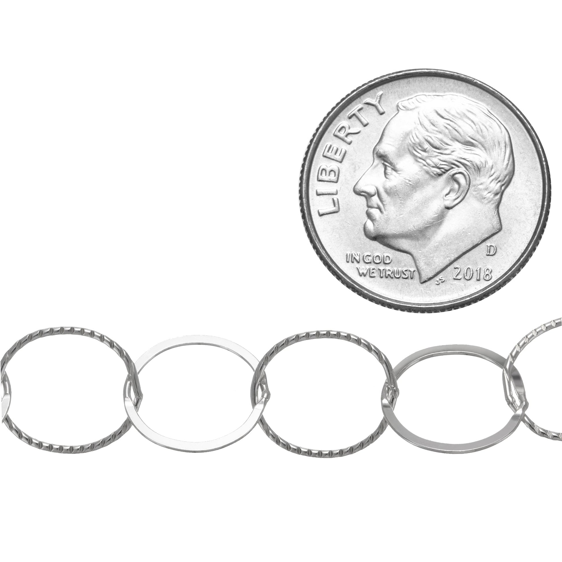 Sterling Silver 10.0mm Width / Length Flat, Corrugated Circle Chain.