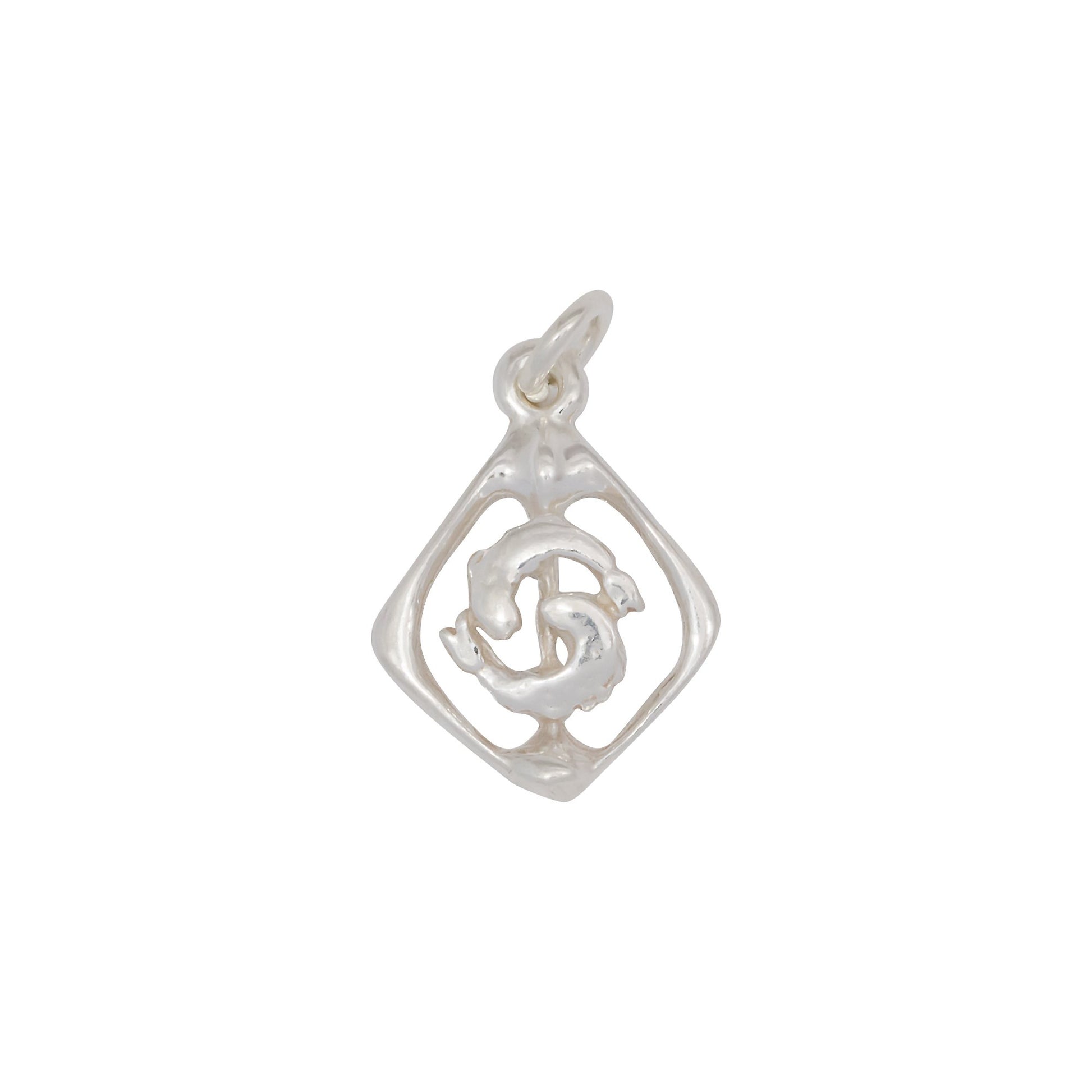 Sterling Silver, 13.6mm Width by 2.2mm Length by 18.4mm Height, Pisces Charm.