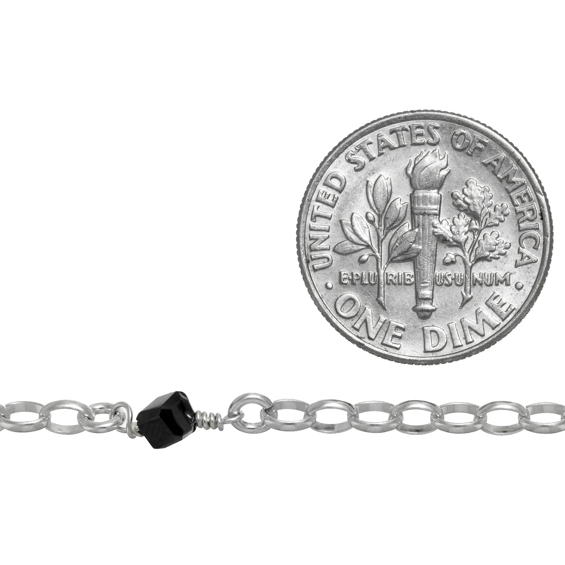 Sterling Silver 2.5mm Width by 3.5mm Length Oval Rolo Chain With Lime Green, Orange and Black CZ Cube Beads. Price per: 1 Inch.