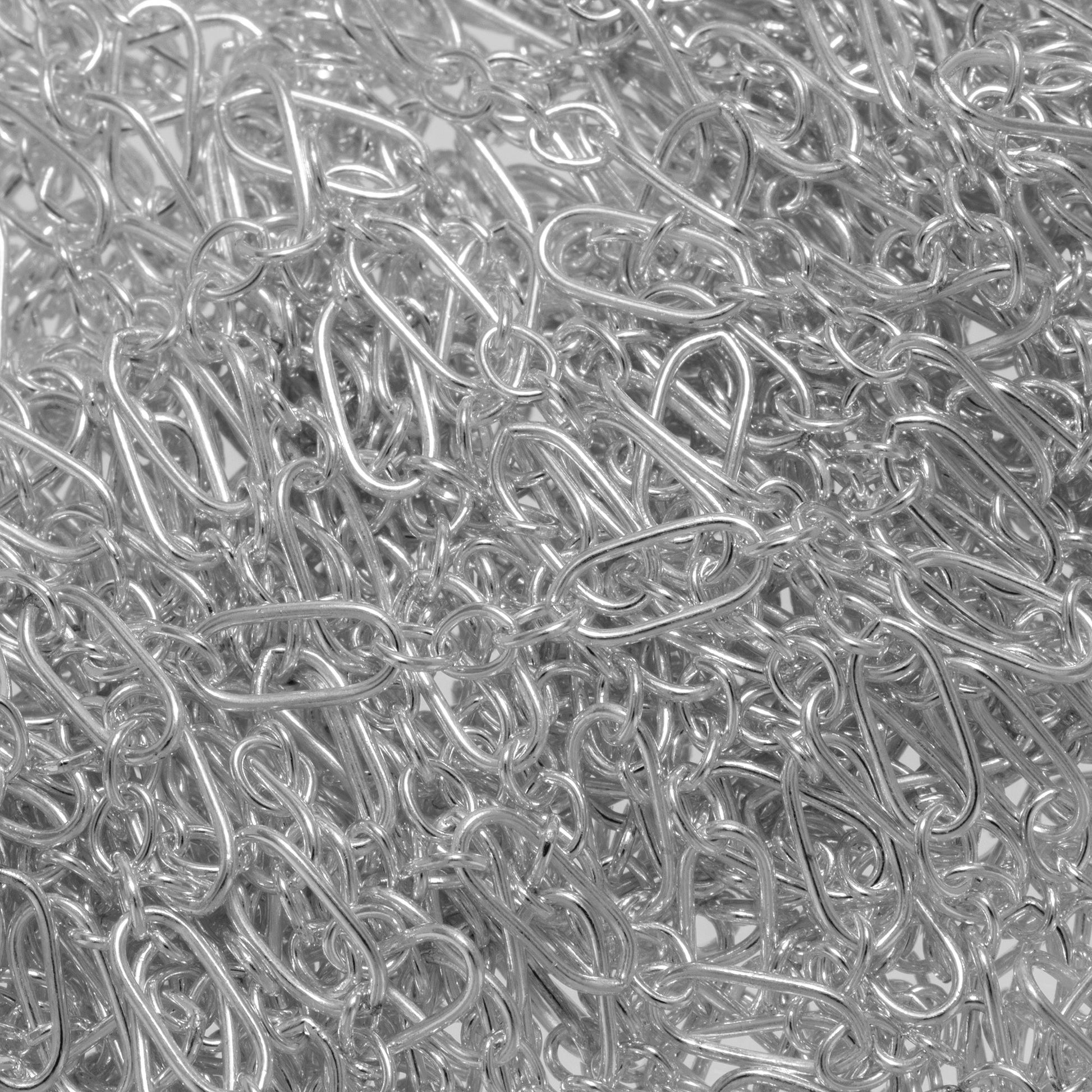 Sterling Silver 2.5mm Width by 5.3mm Length Larger Oval Link follwed by Three 1.8mm Width by 2.0mm Length Smaller Oval Links, Long and Short Chain. Price per: 1 Foot.
