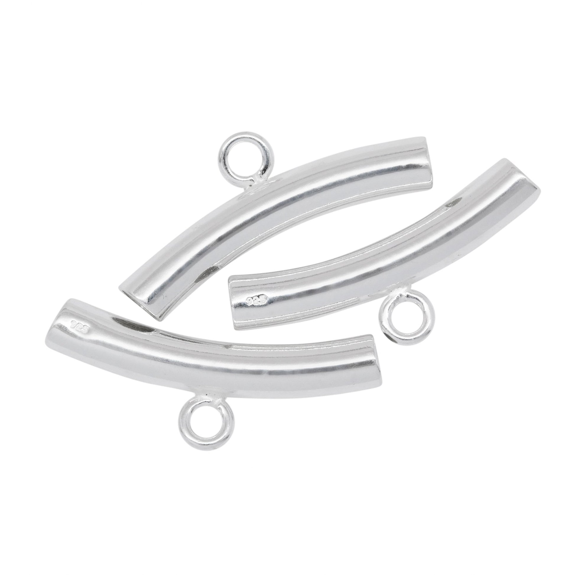 Sterling Silver 3.98mm Width by 25.1mm Length Smooth Curved Tube, Sliding Bail with 18 Gauge 3.9mm Closed Ring at the Bottom. Quantity per pack - 3 Pieces.