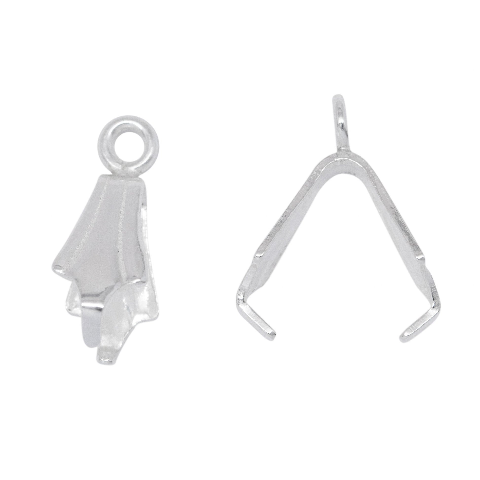 Sterling Silver 4.0mm Width by 7.7mm Height by 7.5mm Length, Pinch Bail with 23.0 Gauge 2.5mm Closed Ring at the Top. Quantity per pack - 10 Pieces.