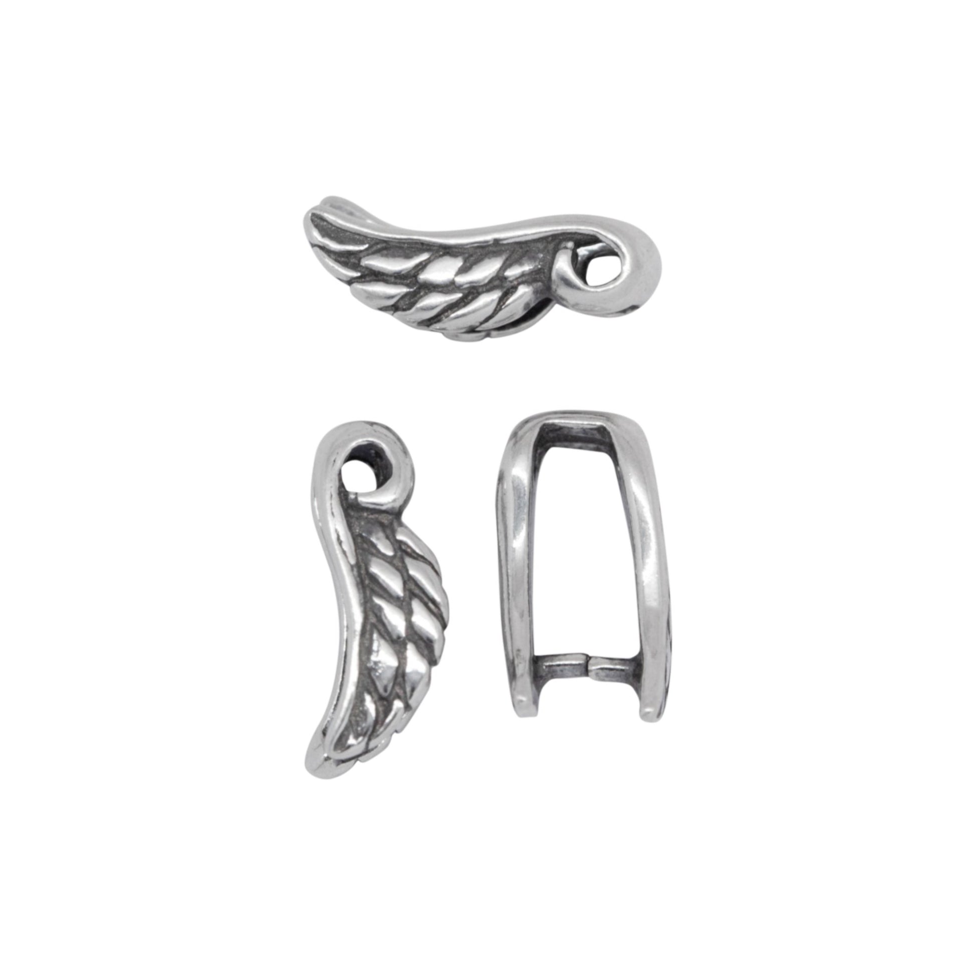 Sterling Silver 5.6mm Width by 11.0mm Height, Feather Pinch Bail.