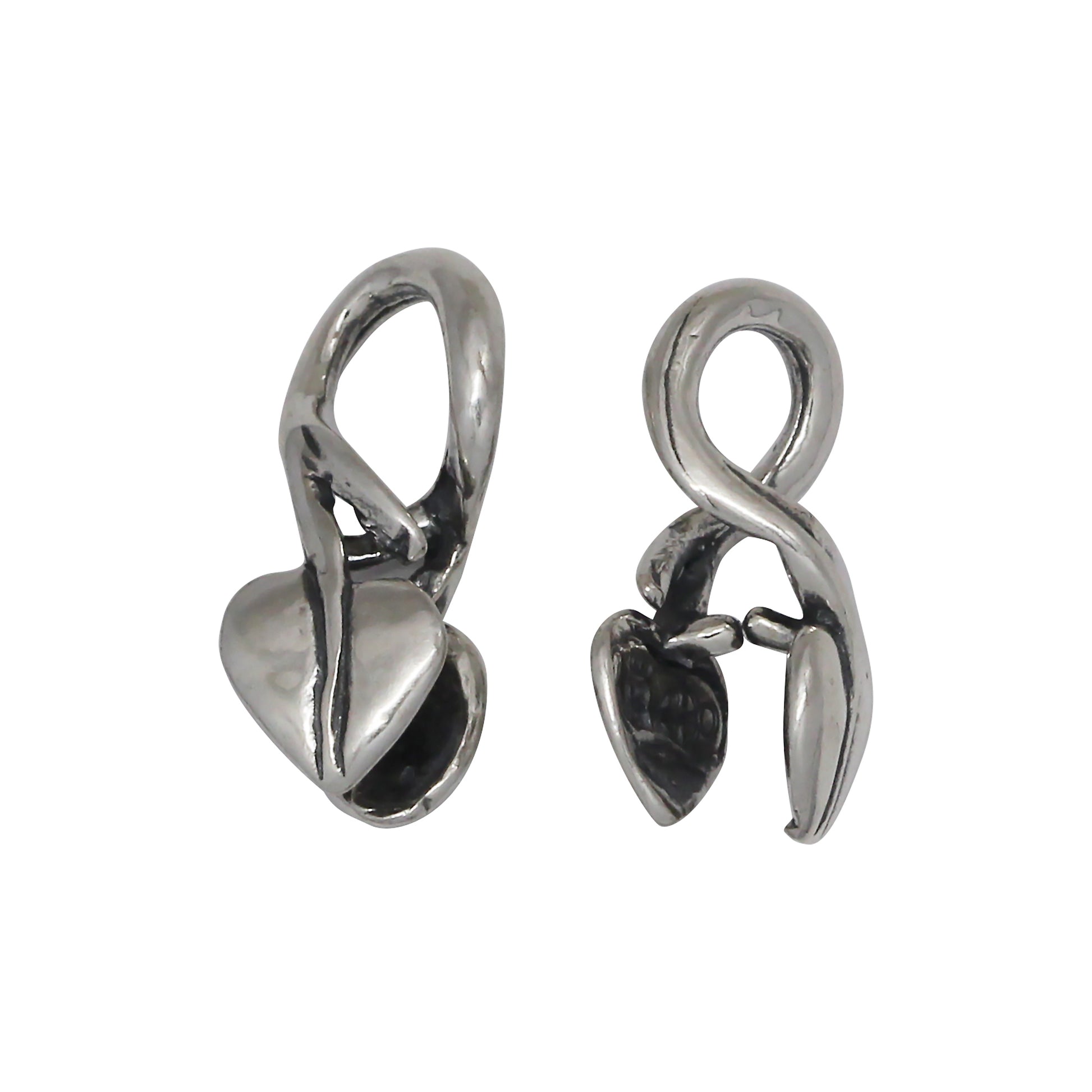 Sterling Silver, 5.8mm Width by 5.7mm Length by 14.2mm Height, Leaf Pinch Bail with 6.1mm Width by 2.0mm Length by 7.9mm Height, Sliding Bail at the top. Quantity per pack - 2 Pieces.
