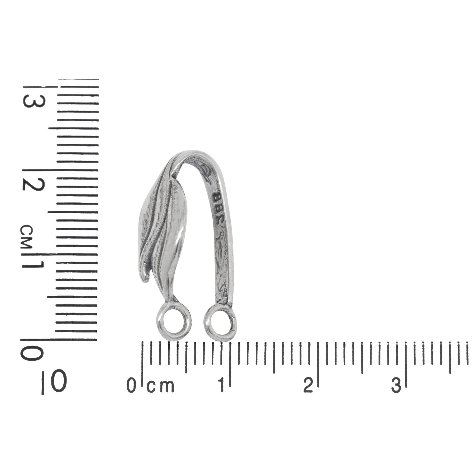 Sterling Silver 9.7mm Width by 17.9mm Height, Double Leaf Donut Bail with Two 19.0 Gauge 4.4mm Closed Rings at the top.