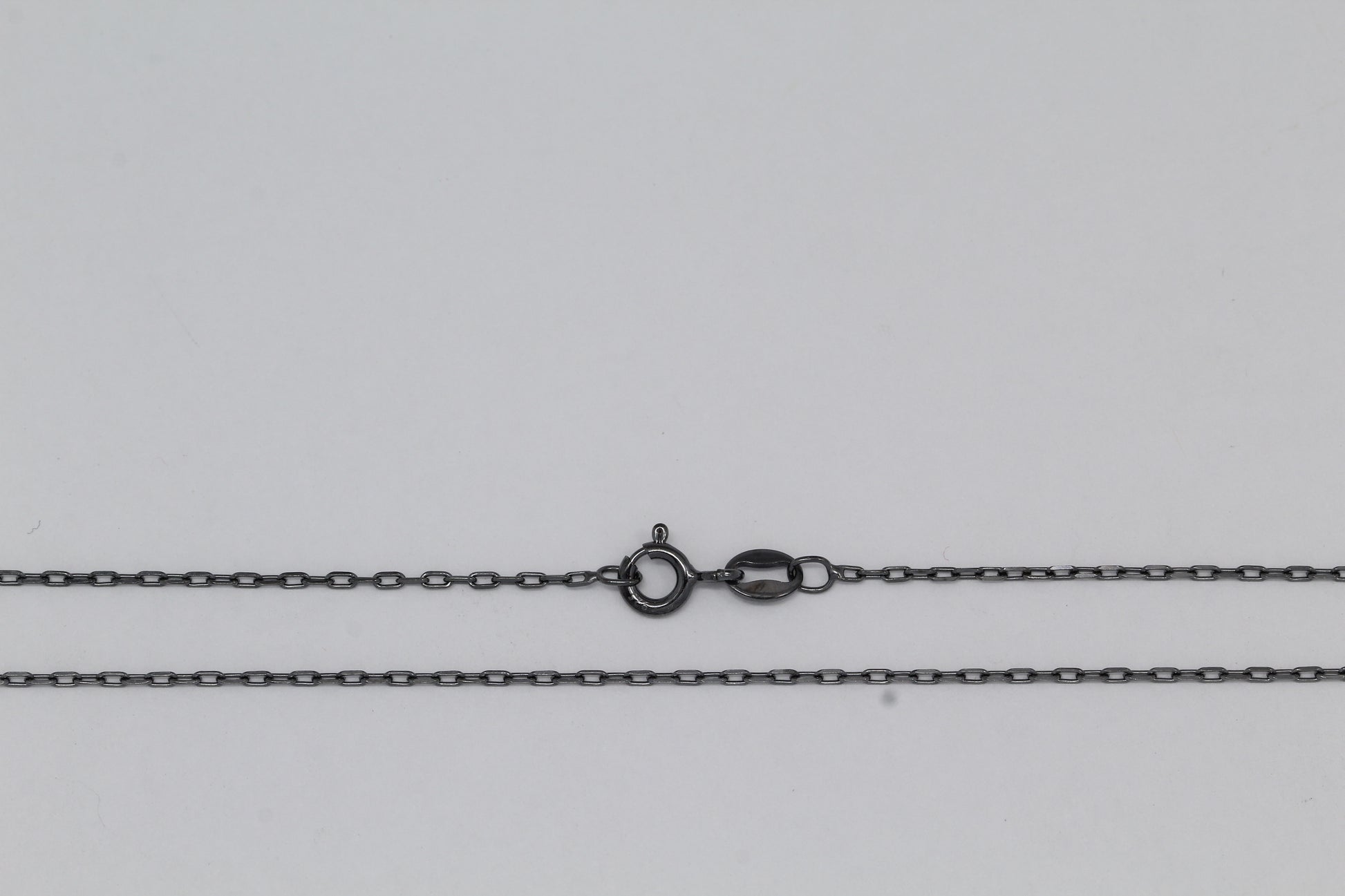 Sterling Silver Black Diamond, 0.8mm Width by 1.0mm Length, 18 Inch Cable Chain with 5.0mm Width / Length by 0.9mm Thick, Smooth Spring Ring Clasp. Quantity Per Pack: 1 Piece.