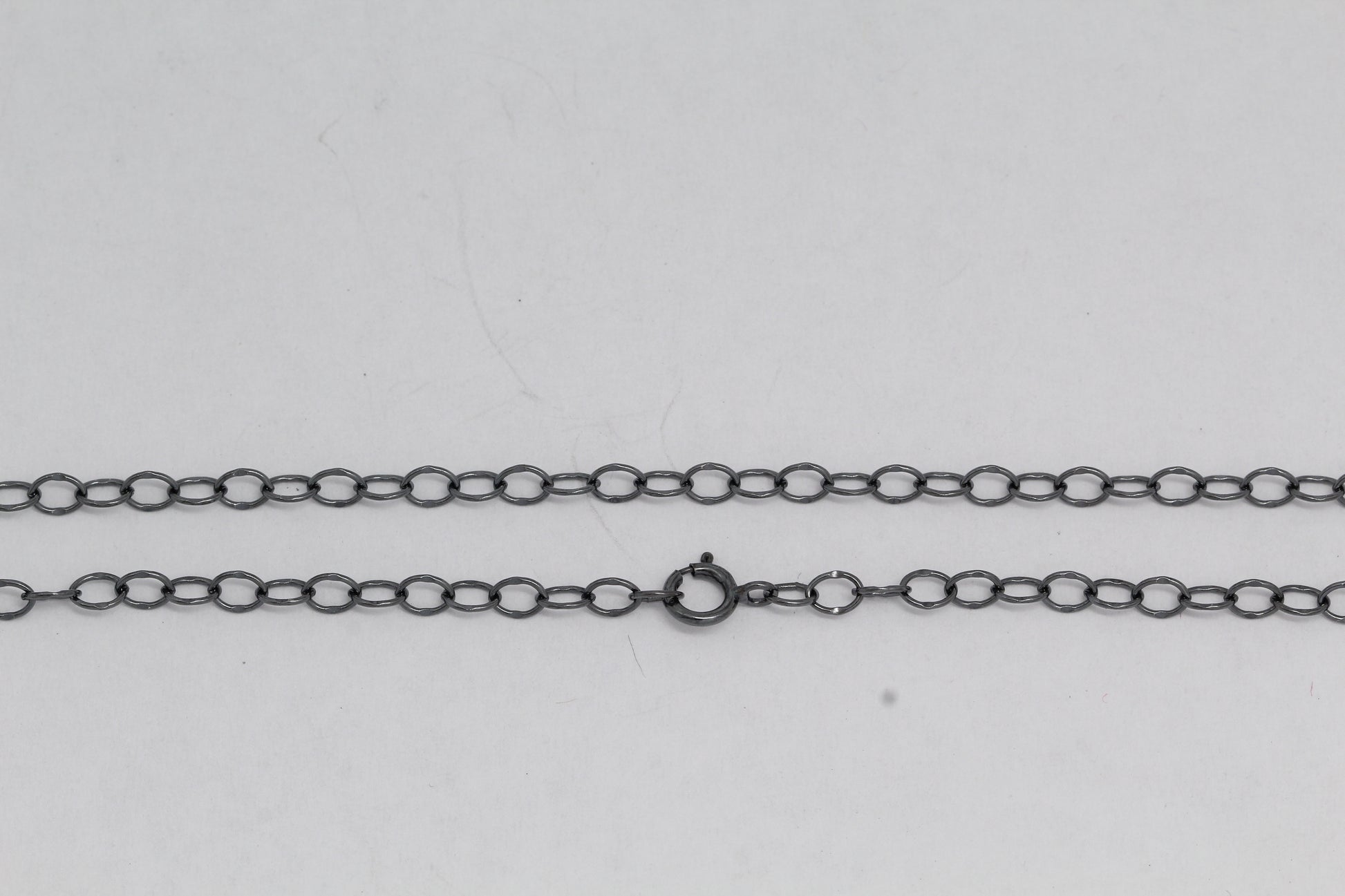 Sterling Silver Black Diamond, 2.8mm Width by 4.0mm Length, 18 Inch Cable Chain with 5.0mm Width / Length by 1.4mm Thick, Smooth Spring Ring Clasp. Quantity Per Pack: 1 Piece.