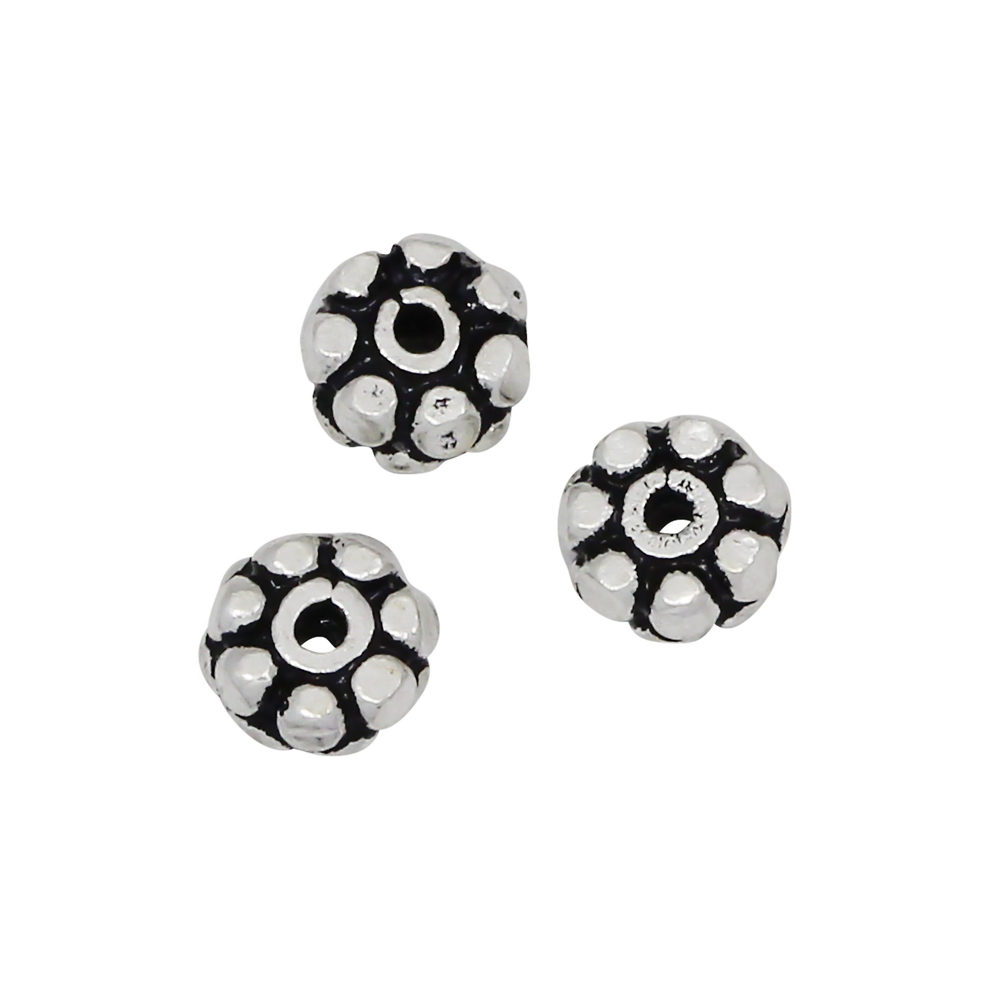 Sterling Silver Oxidized, 4.0mm Width by 4.0mm Length by 2.1mm Height, Fancy Round Bead. Quantity per pack: 14 Pieces.
