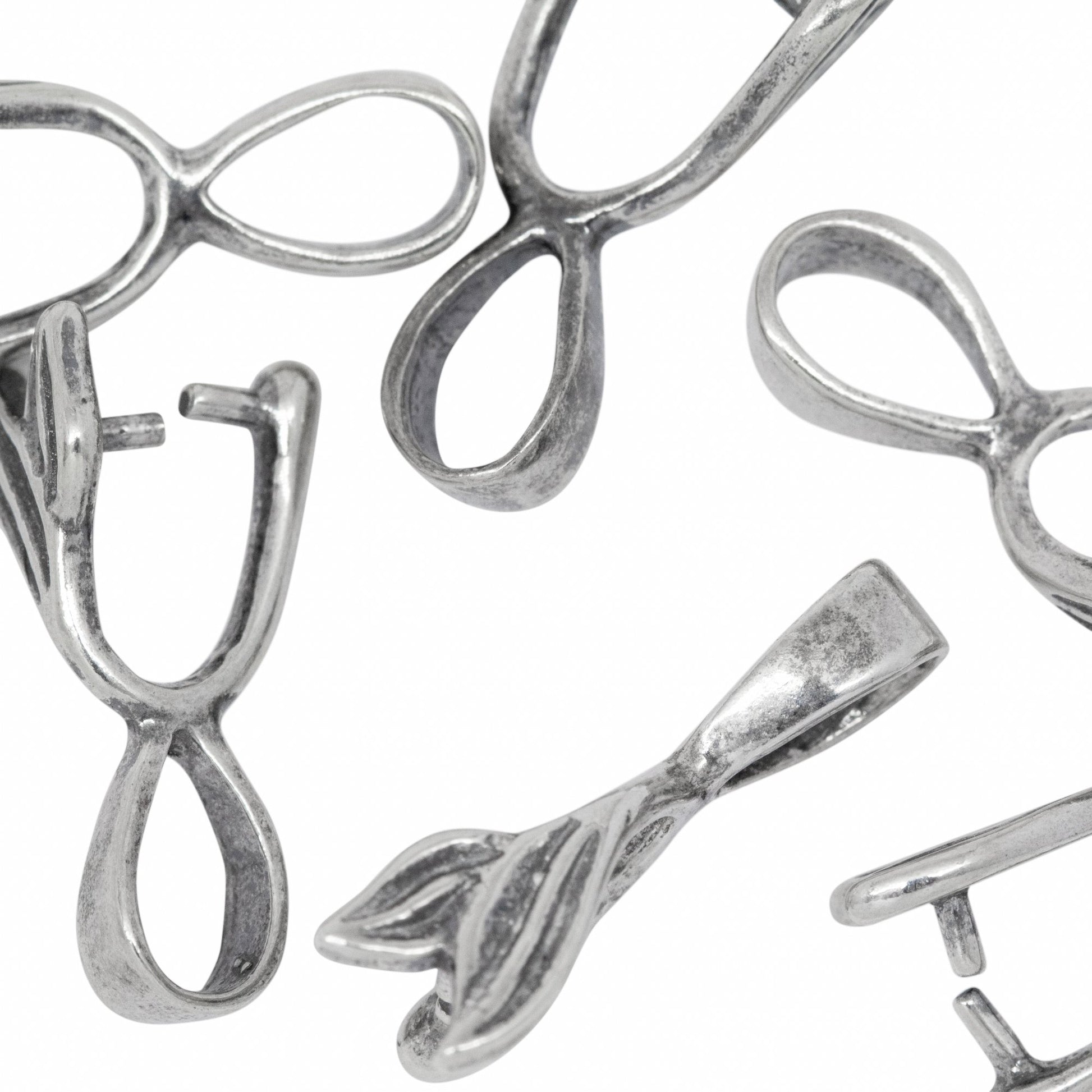 Sterling Silver Oxidized 5.4mm Width by 10.6mm Height, Double Leaf Pinch Bail with 5.2mm Width by 6.9mm Height, Sliding Bail at the top. Quantity per pack - 6 Pieces.